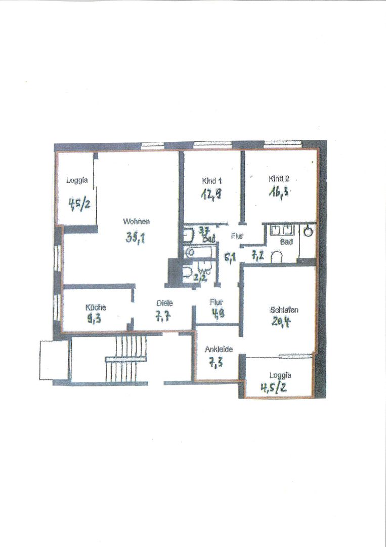 45133 Essen - BredeneyRenovierte, großzügige 4-Raum-Wohnung, ca. 141 m² mit 2 Loggien in Essen-Bredeney